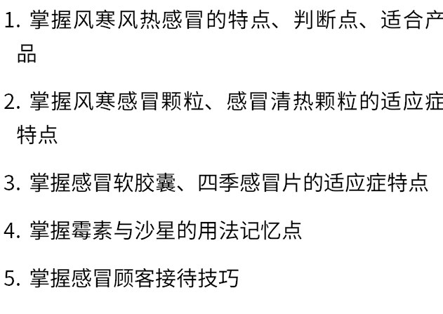 5、學(xué)員并運用接待感冒患者的技巧,以及推薦藥物的技巧。