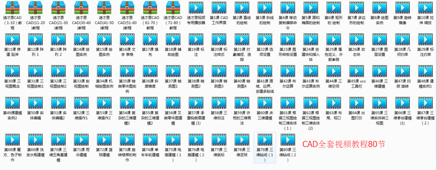 CAD全套視頻教程80節(jié)課,每節(jié)課30分鐘左右