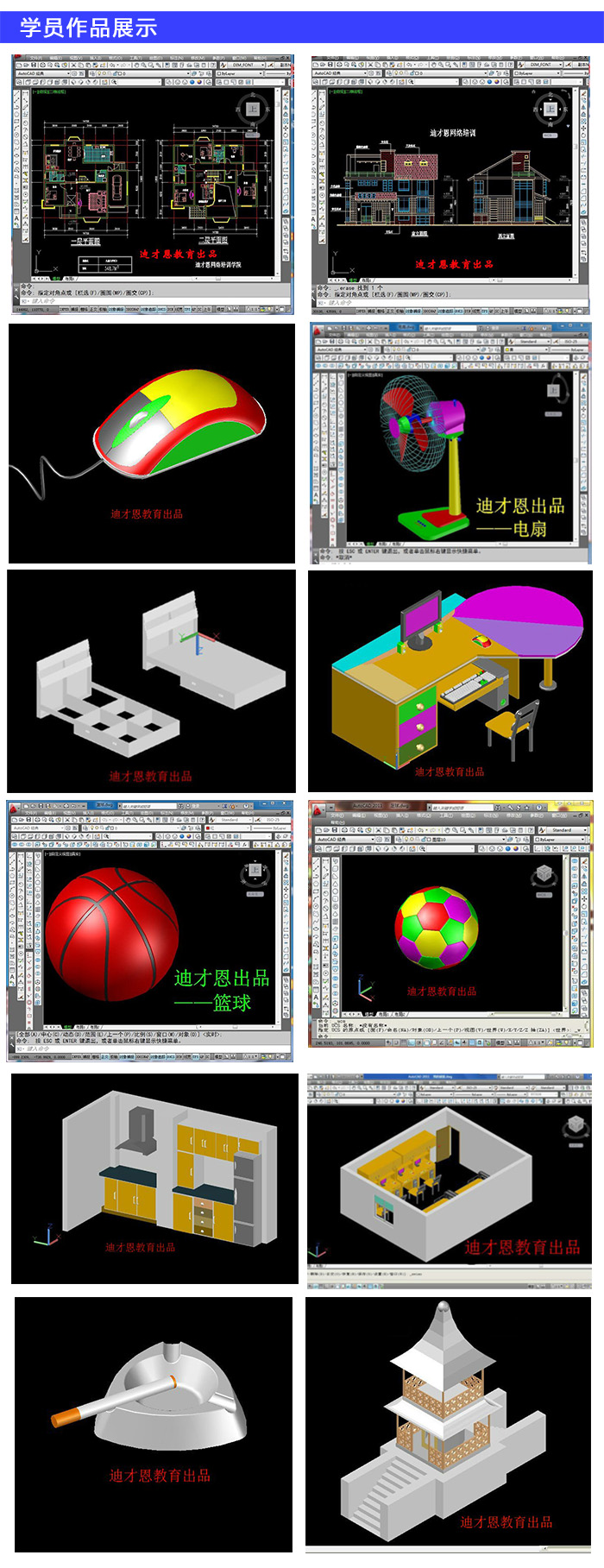 學(xué)習(xí)平面繪圖、尺寸標(biāo)注、軸測(cè)圖、三視圖、剖視圖、局部視圖、曲面造型、家具繪圖、機(jī)械繪圖、三維建模、出圖打印等
