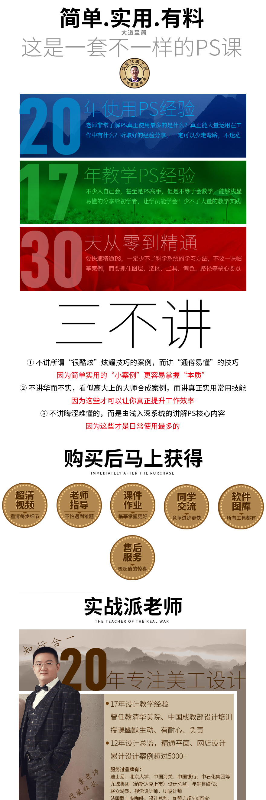 零基礎(chǔ)新手、設(shè)計(jì)專業(yè)學(xué)生、設(shè)計(jì)師精通掌握PS,全面分享主講老師社長,使用20年P(guān)HOTOSHOP軟件的經(jīng)驗(yàn)