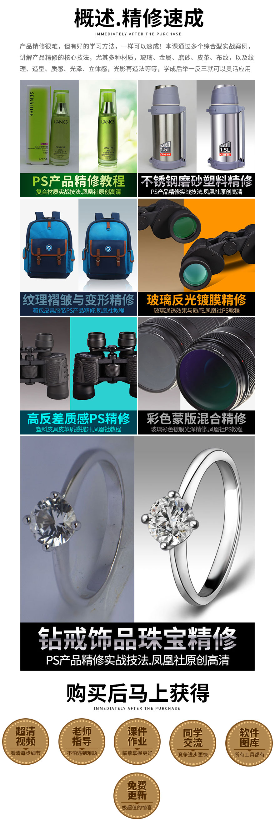 产品精修视频教程淘宝美工教程商业产品精修摄影后期凤凰社PS教程