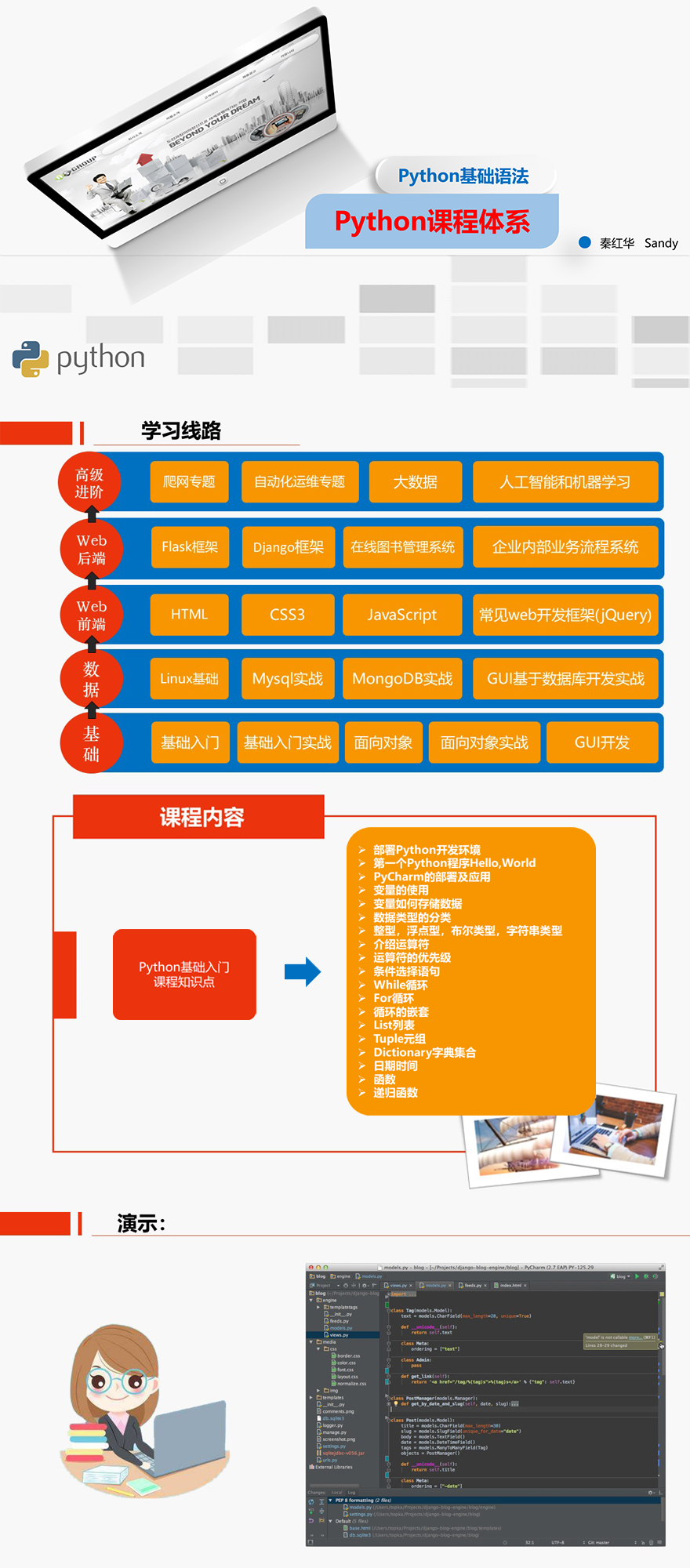 跟著美女講師學(xué)Python,本課程詳細介紹了: