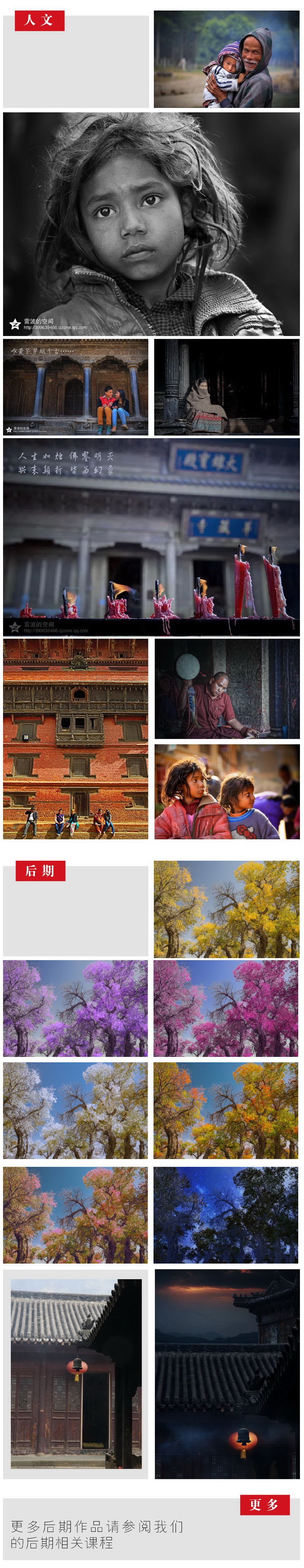 3.【前后融合】本課程在第6個(gè)章節(jié)中加入了后期照片修飾處理技術(shù),這部分課程涵蓋了裁剪二次構(gòu)圖、銳化、去噪、調(diào)整曝光、校正偏色、人像修飾、RAW照片處理等最常用的數(shù)碼照片處理技巧。