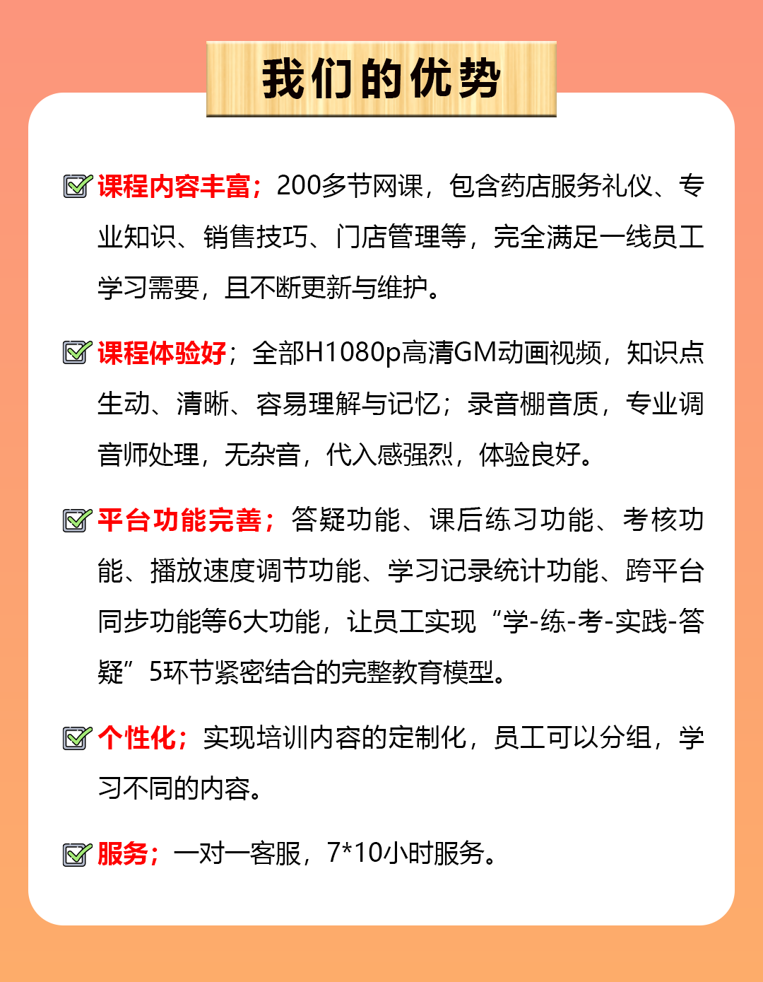 连锁药店员工培训系统方案(定制培训计划-考试监督)