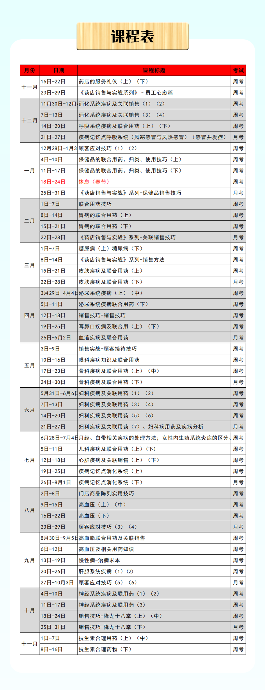 - 16日-22日: 药店的服务礼仪(上)(下)