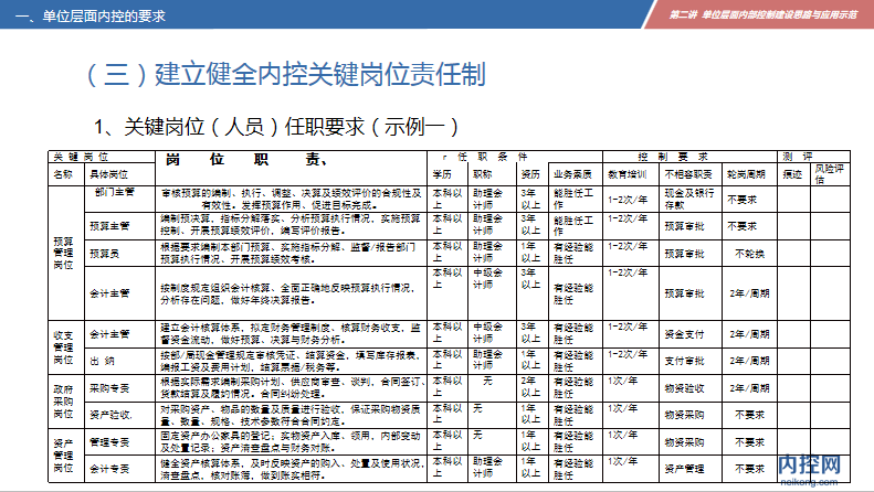 (三)建立健全內(nèi)控關(guān)鍵崗位責(zé)任制