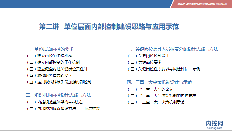 第二講 ?單位層面內(nèi)部控制建設(shè)思路與應(yīng)用示范