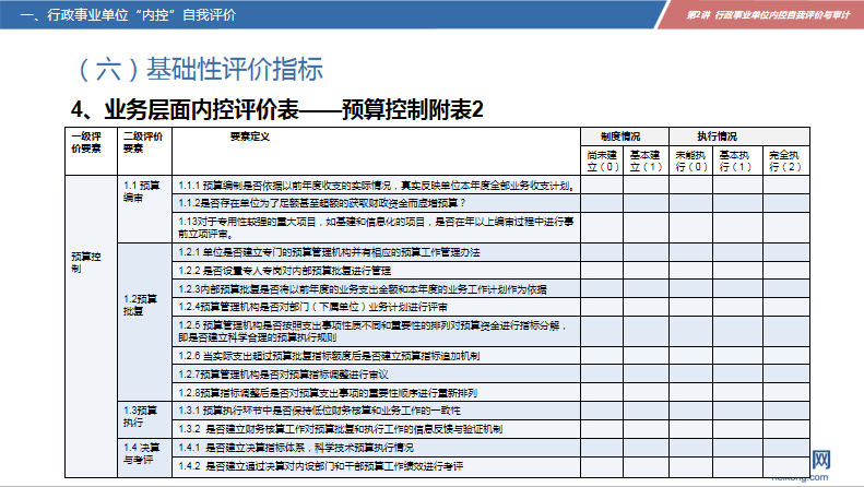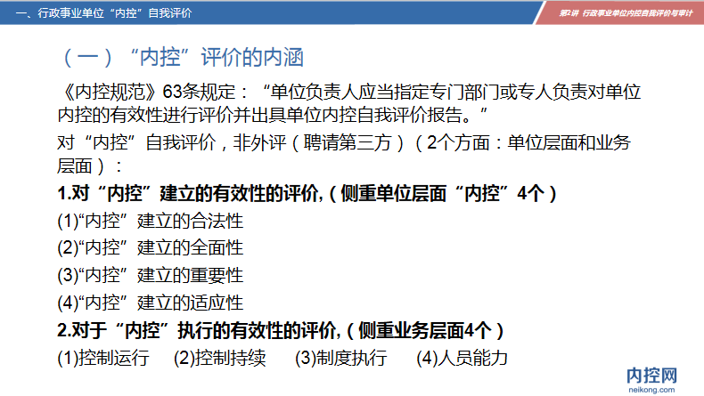2.行政事業(yè)單位內(nèi)控評價——建立(單位層面)與執(zhí)行(業(yè)務(wù)層面)有效性;