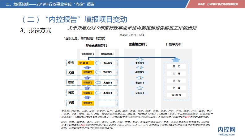 1、財政部——負責組織全國“內(nèi)控”編報工作;