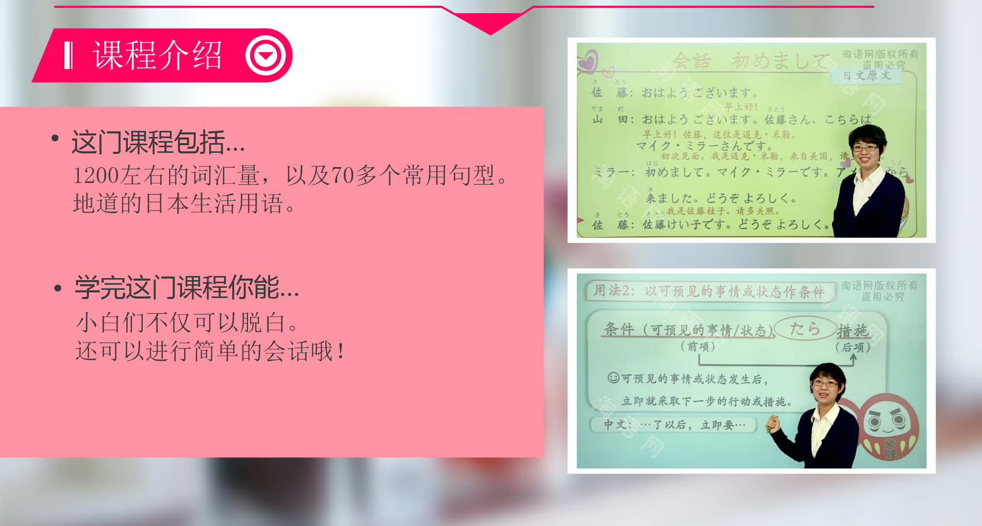 課件1 : 标准日本语中级上册第02课文法(压缩版) 57分57秒 可學(xué)22次