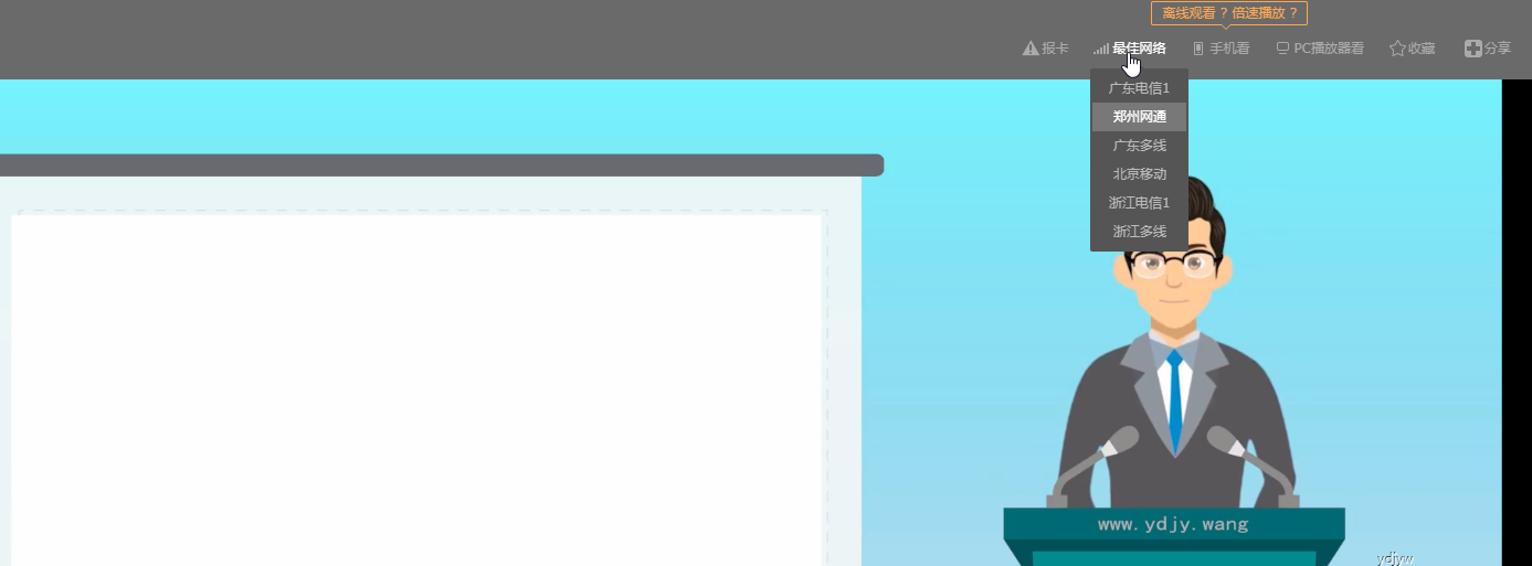 如果觀看視頻有卡頓現(xiàn)象,您可以切換線路或下載視頻,具體操作如下: