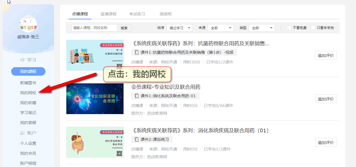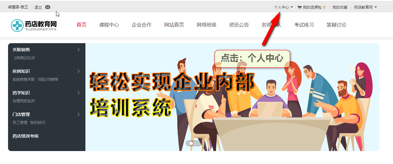 第一步:在瀏覽器中輸入:www.ydjy365.cn進(jìn)入藥店教育網(wǎng),然后點(diǎn)擊導(dǎo)航進(jìn)入網(wǎng)校。
