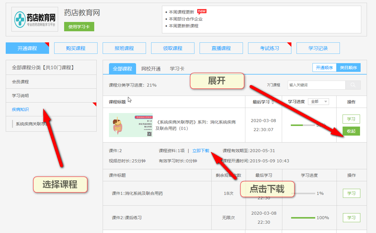第五步:進(jìn)入如下頁面即可點(diǎn)擊相關(guān)課程進(jìn)行學(xué)習(xí):