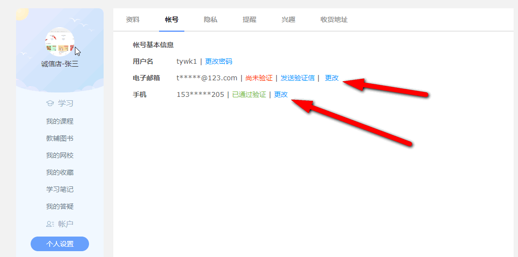 3、點(diǎn)擊左側(cè)導(dǎo)航欄中的“個(gè)人設(shè)置”選項(xiàng)卡,進(jìn)入個(gè)人設(shè)置。然后點(diǎn)擊上方的“賬號(hào)設(shè)置”選項(xiàng)卡,進(jìn)入賬號(hào)設(shè)置,您既可以看到賬號(hào)基本信息。然后可以修改“電子郵箱”,以及綁定手機(jī)。