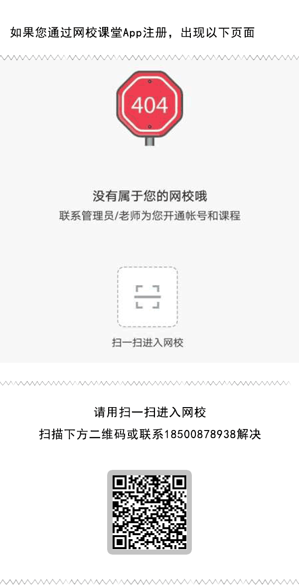 摘要:如果,您通過(guò)網(wǎng)校課堂app注冊(cè)學(xué)習(xí)賬號(hào),出現(xiàn)404頁(yè)面,“沒有屬于您的網(wǎng)校哦”,您可以掃描最下方二維碼,或通過(guò)聯(lián)系18500878938解決。