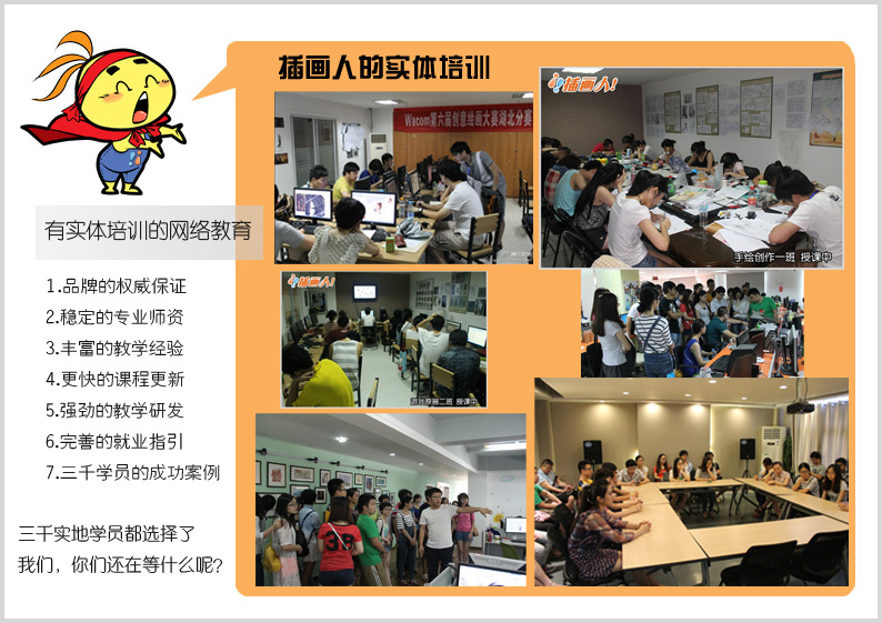 插畫人作為創(chuàng)辦最早、口碑優(yōu)秀、教學(xué)經(jīng)驗豐富的實地動漫培訓(xùn)機構(gòu),我們最了解學(xué)員需要什么、我們知道如何專業(yè)的輔導(dǎo)學(xué)員前進、我們有穩(wěn)定專業(yè)的教學(xué)及研發(fā)團隊、我們能為學(xué)員提供最專業(yè)的繪畫學(xué)習(xí)服務(wù)!當(dāng)我們把實地的優(yōu)秀教育產(chǎn)品移植到網(wǎng)絡(luò)平臺之后,更加具備了產(chǎn)品專業(yè)、方便學(xué)習(xí)、優(yōu)惠價格的特點,那你們還在等什么呢?一起來進步吧!