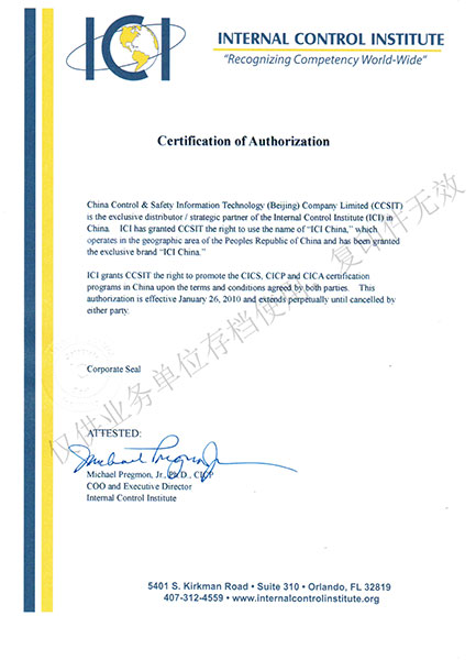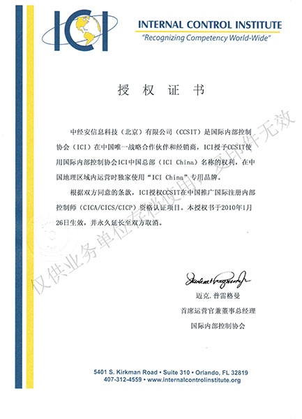 國際內(nèi)部控制協(xié)會ICI授權書 |