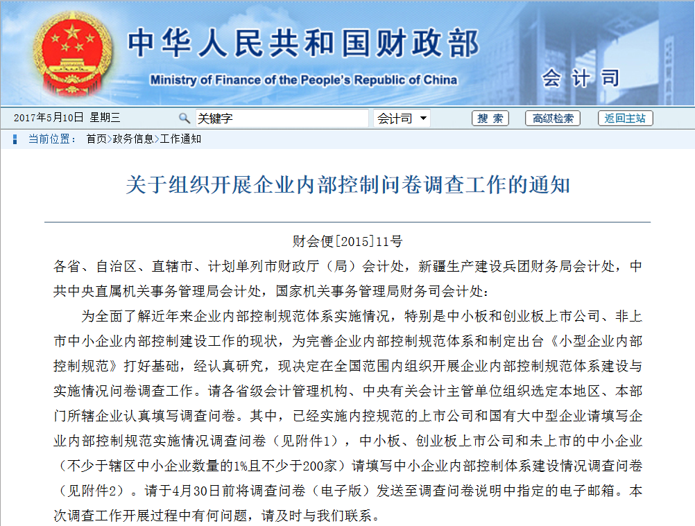 財(cái)政部:中小企業(yè)內(nèi)部控制體系建設(shè)情況調(diào)查問卷及填寫說明