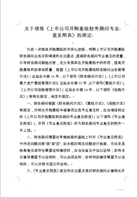 關(guān)于填報(bào)《上市公司并購(gòu)重組財(cái)務(wù)顧問(wèn)專業(yè) 意見(jiàn)附表》的規(guī)定