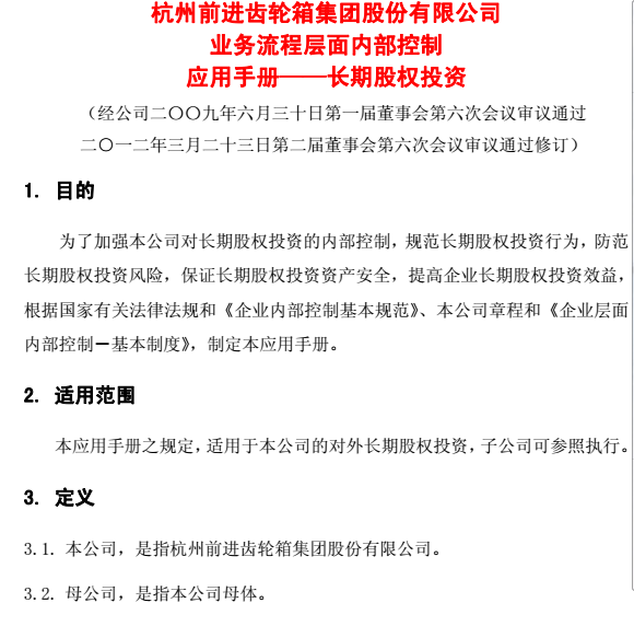 杭齒前進(jìn)業(yè)務(wù)流程層面內(nèi)部控制應(yīng)用手權(quán)投資