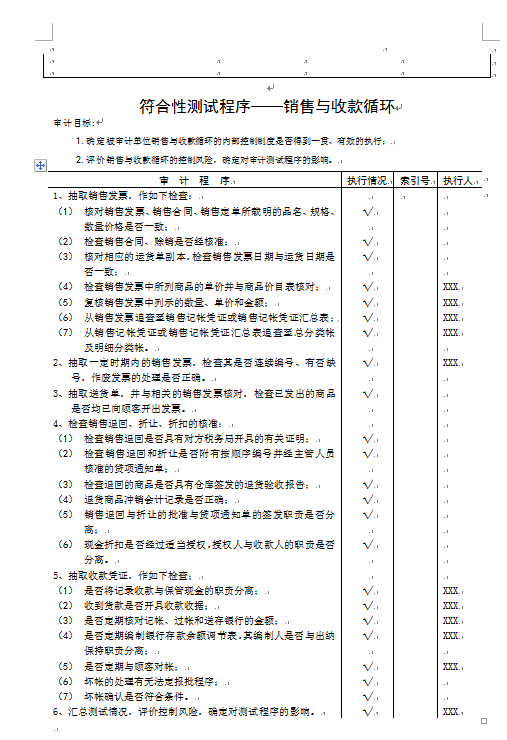 ABC股份有限公司 銷售與收款循環(huán)審計程序表