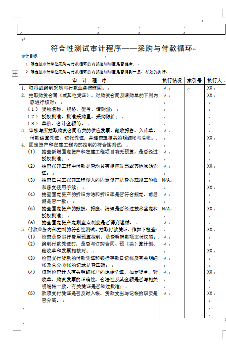 符合性測試審計(jì)程序──采購與付款循環(huán)程序表 (1)