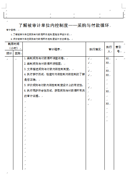 了解被審計(jì)單位內(nèi)控制度──采購與付款循環(huán)程序表