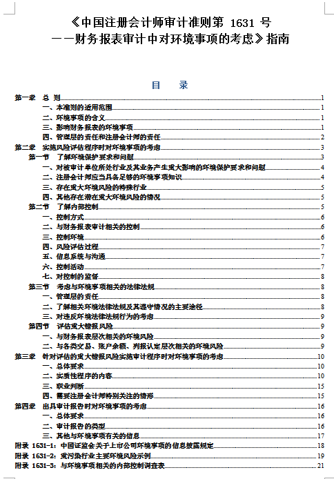 《審計準(zhǔn)則第1631號:財務(wù)報表審計中對環(huán)境事項的考慮》指