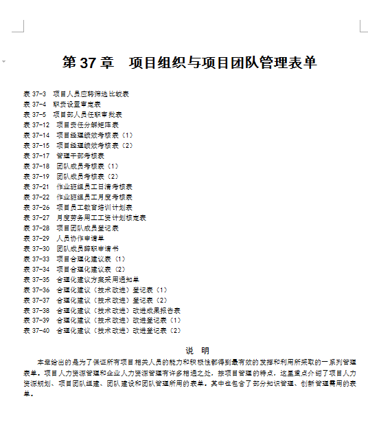 第37章  項(xiàng)目組織與項(xiàng)目團(tuán)隊(duì)管理表單