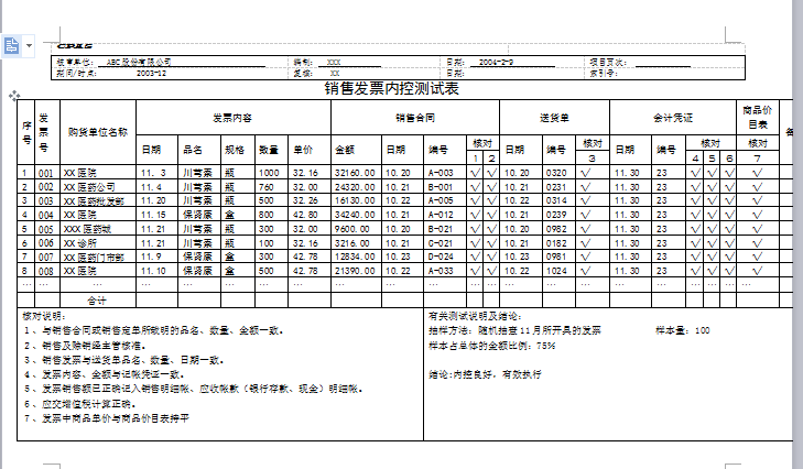 符合性測(cè)試工作底稿-銷(xiāo)售銷(xiāo)售循環(huán)表格(ABC)