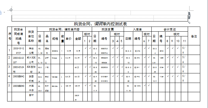 購貨合同、請購單內(nèi)控測試表