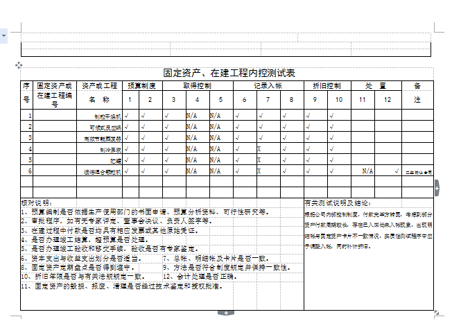 固定資產(chǎn)、在建工程內(nèi)控測試表1