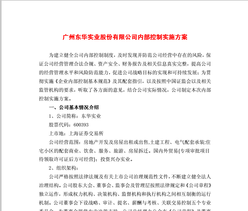 東華實(shí)業(yè)內(nèi)部控制實(shí)施方案2012-3-21