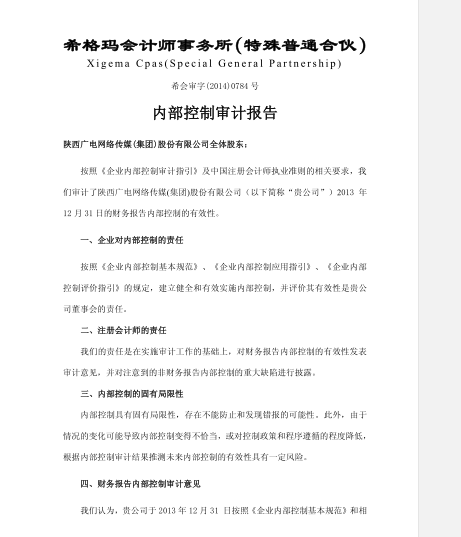廣電網(wǎng)絡(luò)內(nèi)部控制審計(jì)報(bào)告2014-3-21