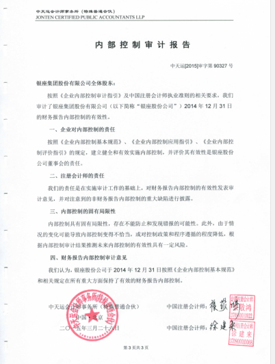 銀座股份2014年度內(nèi)部控制審計報告2015-3-28