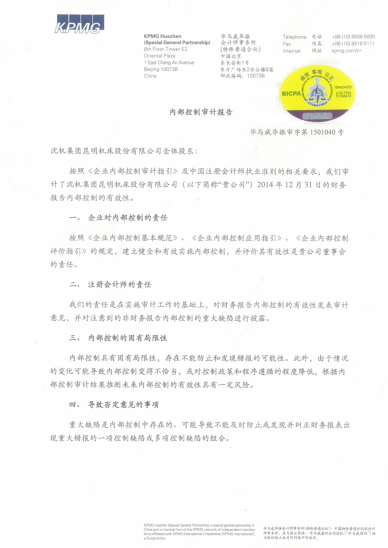 昆明機(jī)床2014年度內(nèi)部控制審計(jì)報(bào)告2015-3-31