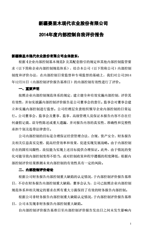 新賽股份2014年度內(nèi)部控制自我評價(jià)報(bào)告2015-4-17.pdf