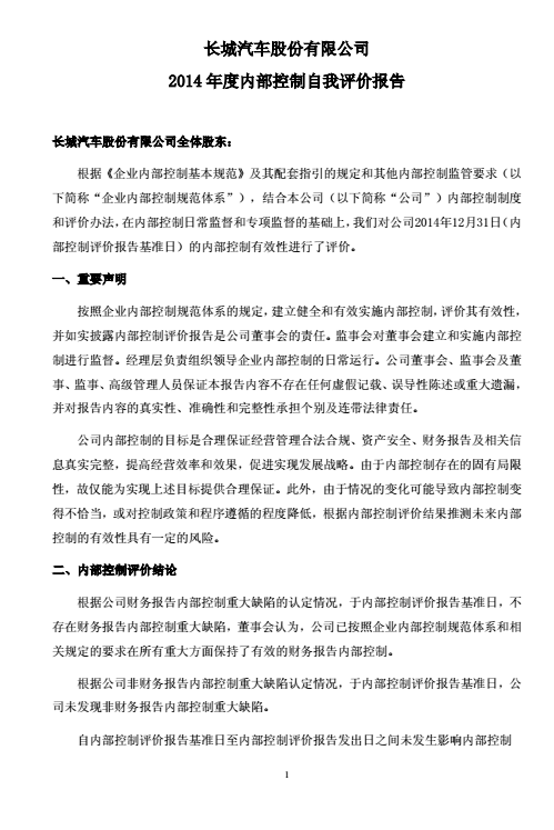 長城汽車2014年度內部控制自我評價報告2015-3-21.pdf