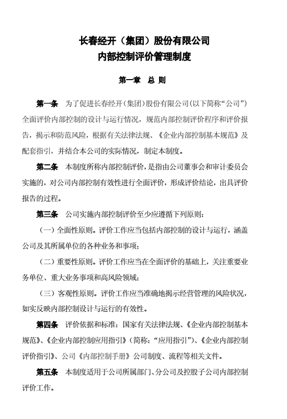 長(zhǎng)春經(jīng)開內(nèi)部控制評(píng)價(jià)管理制度2013-6-15