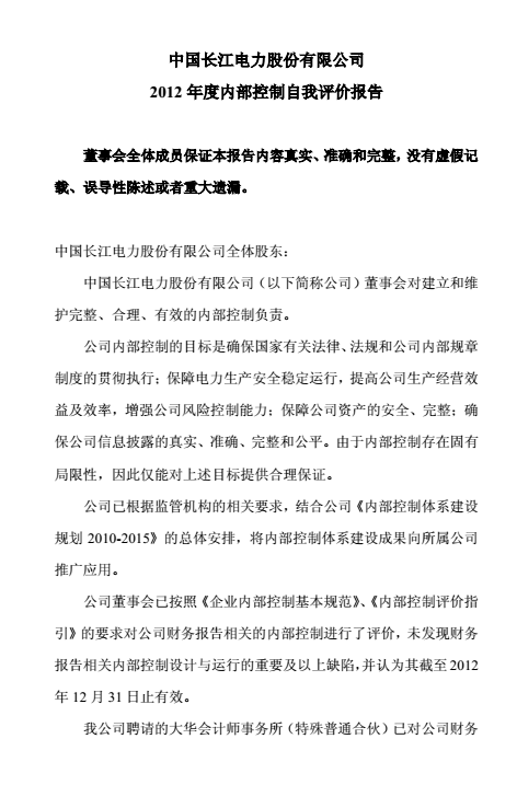 長江電力2012年度內(nèi)部控制自我評價報告2013-4-27.pdf