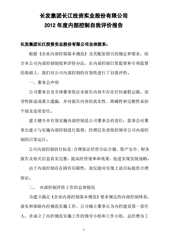 長江投資2012年度內(nèi)部控制自我評價報告2013-3-18.pdf