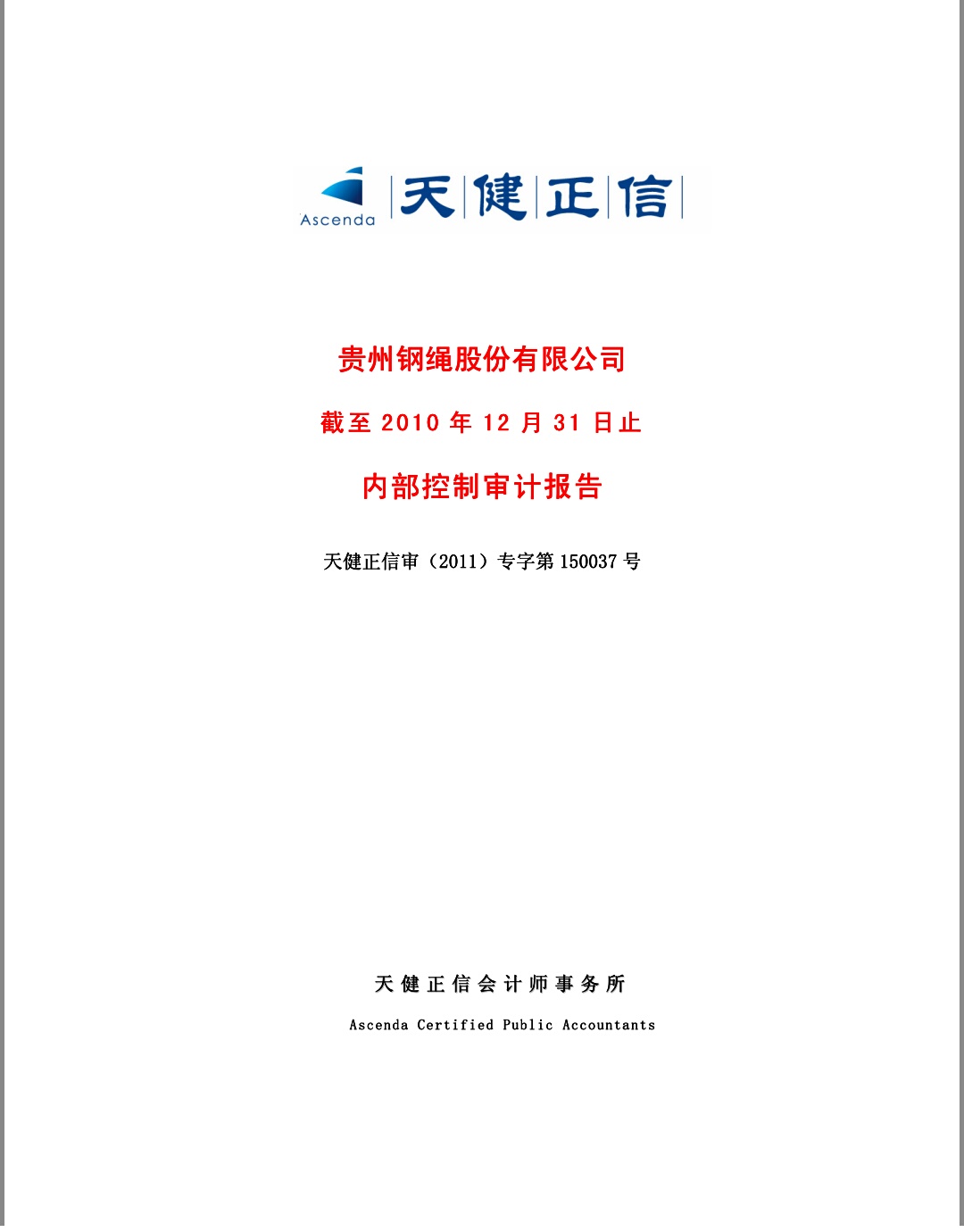 貴州鋼繩股份有限公司2010 年內(nèi)部控制審計報告