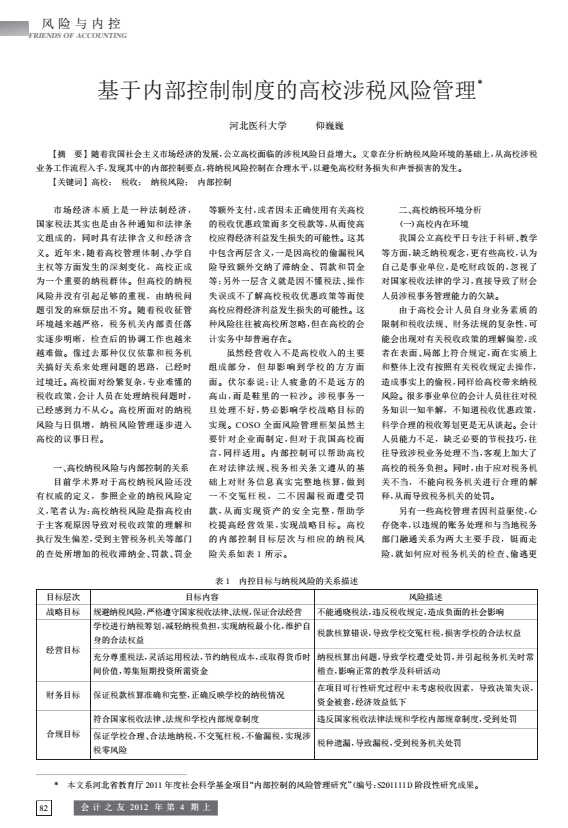 基于內(nèi)部控制制度的高校涉稅風(fēng)險(xiǎn)管理