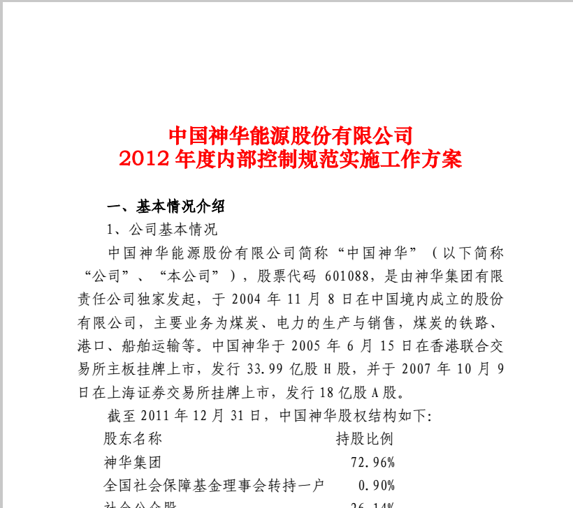 中國神華2012年度內部控制規(guī)范實施工作方案2012-3-24.pdf