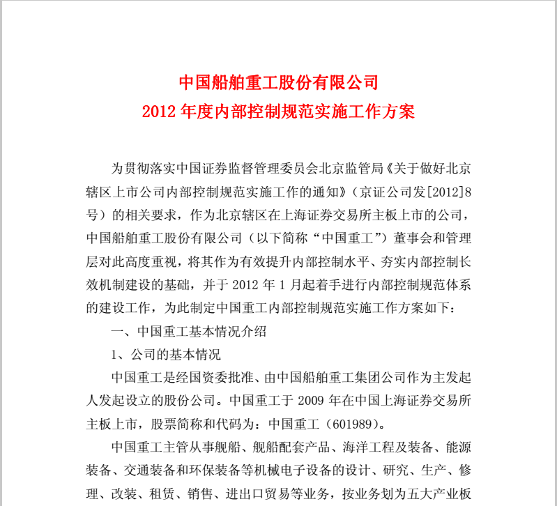 中國重工2012年度內(nèi)部控制規(guī)范實施工作方案2012-3-21.pdf