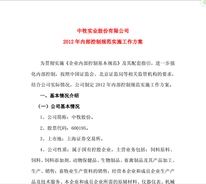 中牧股份2012年內(nèi)部控制規(guī)范實(shí)施工作方案2012-3-31