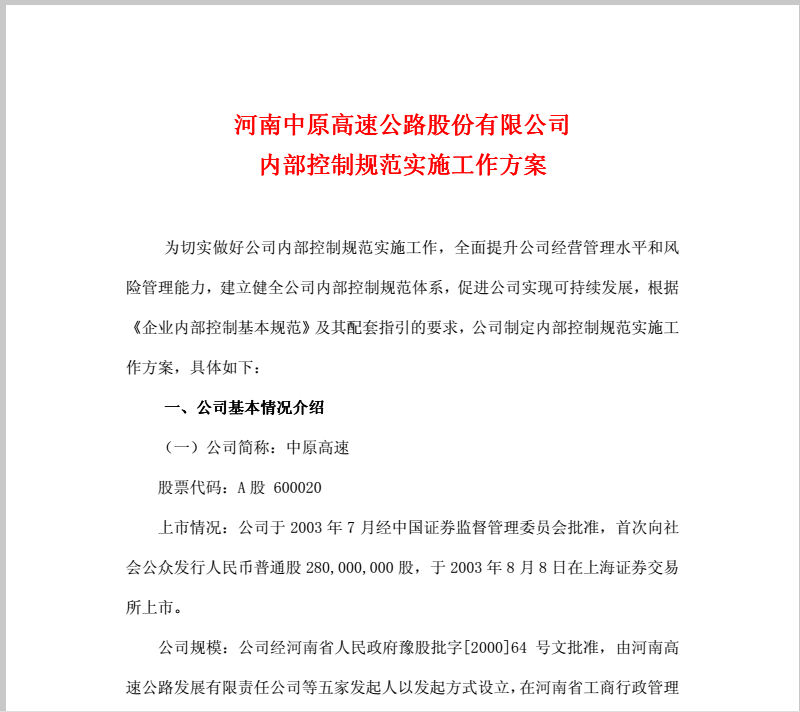 中原高速內(nèi)部控制規(guī)范實施工作方案2012-3-31.pdf