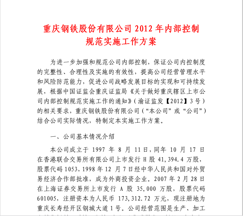 重慶鋼鐵2012年內(nèi)部控制規(guī)范實施工作方案2012-2-29.pdf