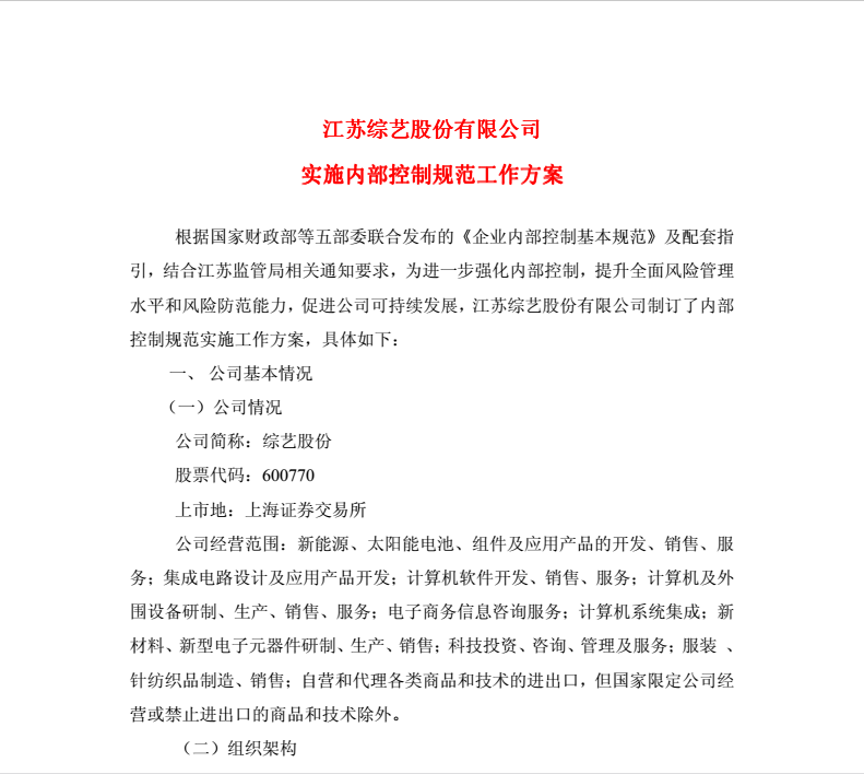 綜藝股份實(shí)施內(nèi)部控制規(guī)范工作方案2012-3-31
