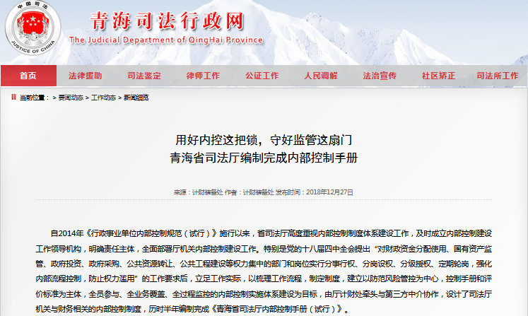 用好內控這把鎖,守好監(jiān)管這扇門?青海省司法廳編制完成內部控制手冊